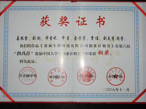 我校两件作品荣获第六届“挑战杯”中国大学生创业计划竞赛铜奖