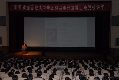 此次李开复博士来校讲座,受到了广大同学的热烈欢迎,一个星期以前大家就踊跃在网上预约门票,300多张门票不到一个小时就被大家预订一空;而报告现场也更是火爆,能容纳1300多人的大礼堂内水泄不通。