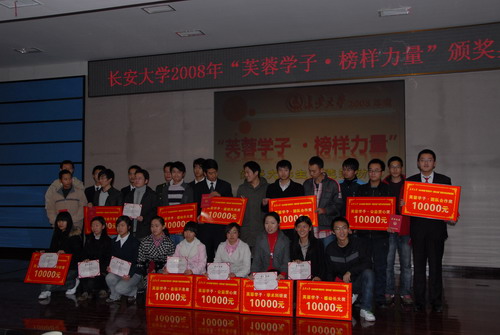 据悉,2008年“芙蓉学子•榜样力量”优秀大学生评选活动共设有“学术科研奖”、“道德风尚奖”、“团队合作奖”、“自强不息奖”、“公益爱心奖”、“感动长大奖”六个奖项,共奖励12名个人(团队),每名同学(团队)将获得10000元的现金奖励。同时,经组委会决定,将对获得提名奖的12名同学(团队)各奖励500元。