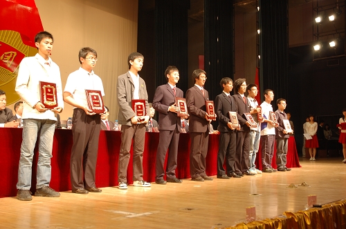 大会上,学工部部长田新民宣读了《关于表彰国家奖学金、国家励志奖学等优秀学生和先进班集体的决定》;教务处处长徐岳宣读了《关于表彰学生科技创新竞赛和学科竞赛获奖作品和获奖者的决定》;校团委副书记张骞文宣读了《关于表彰共青团系统先进集体和先进个人的决定》。学生代表、学生会主席朱绍明作了发言。