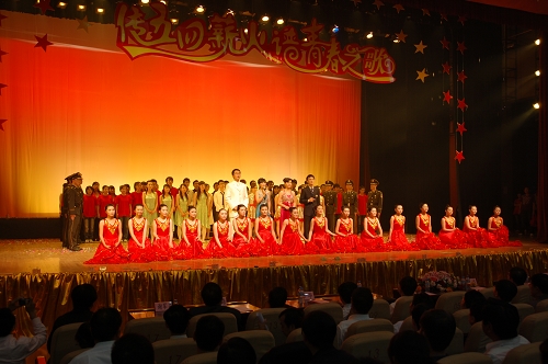 大会结束后,校领导与参加大会的师生一起观看了我校大学生艺术团为庆祝“五四”青年节而精心准备的文艺表演。