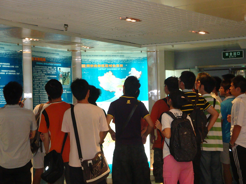 9点40分,访问团到达了“创业广场”写字楼,在创业园发展中心的安排下,同学们首先参观了高新区展示大厅并认真听取了讲解员对高新区的地理结构、开发历程、商务模式、产业开发、发展定位、技术创新等方面的详细介绍。在讲解的过程中,同学们得知,西安市高新区是国务院1991年3月首批成立的国家级高新区。十多年来,通过体制创新和技术创新,在园区建设、环境营造、招商引资、产业发展方面取得了显著成绩。在讲解员细致耐心的讲解下,同学们对高新区又有了更深的了解。接着,同学们又来到技术成果展示大厅,参观了高新区近几年来的科技成果,其中覆盖了包括电子元器件行业、软件行业、通讯行业、半导体与集成电路行业等众多领域。这些科技成果新颖独特,种类繁多,令在场的同学们赞叹不已。