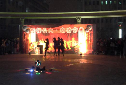 2009年10月30日晚19点,长安大学研究生会“相约长大 激情罗马”万圣节假面舞会在校本部东院罗马广场圆满举行。武装部部长兼学工部副部长贺宏斌老师、校团委社团与文体部主任龚少博老师、学工部辛绞珍老师等领导老师应邀出席了晚会。参加晚会的还有来自西安交通大学、陕西师范大学、西北大学等六所高校的研究生会主席团成员,我校研究生及校内外友好人士1000余人参加了此次舞会。舞会由陕西广播电台主持人、我校09届毕业生岳朦同学等领衔主持。