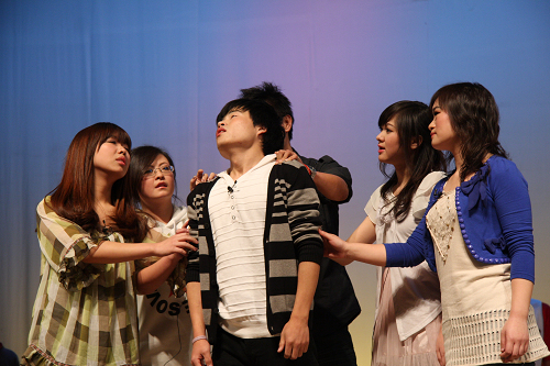 此次演出我校共选送小品《水珠的呼唤》、《西部志愿者》及音乐剧《爱的谎言协奏曲》三个优秀作品参赛。《水珠的呼唤》讲述了一位临近毕业的女大学生到西北农村支教的感人故事。当场上演员喊出“支援西北、支援祖国”的口号时引来台下观众热烈的掌声。小品《西部志愿者》以诙谐的语言、生动的表演迎来在场观众雷鸣般的掌声。最后上演的是音乐剧《爱的谎言协奏曲》,讲述的是在5•12地震后全班同学为了让一个家住灾区的同学振作起来,先后编织了三个谎言告诉他家中安好,但都被识破,最后经过同学们的努力终于帮他联系上了家人。震撼的音乐、优美的舞姿、感人的台词,让现场许多观众泪流满面,将晚会推向高潮。
