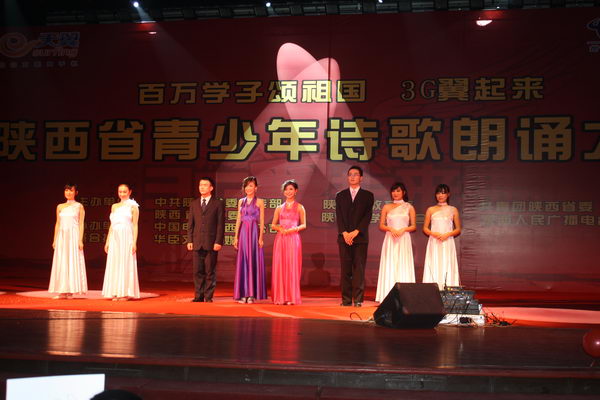 2009年11月29日,由中共陕西省委宣传部、陕西省教育厅、共青团陕西省委员会、陕西省少工委、陕西省学生联合会、陕西省人民广播电台联合主办的“百万学子颂祖国”陕西省青少年诗歌朗诵大赛在西安电子科技大学大学生活动中心举行。