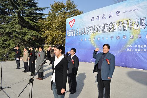 12月5日是第24个国际志愿者日。5日上午,团省委、省文明办在西北大学举行“我们是熊宁——陕西省注册志愿者集体宣誓暨陕西省志愿服务队授旗仪式”。团省委书记卫华、团省委副书记张小平等领导出席仪式,我校朱绍明同学作为陕西省志愿者代表在仪式上领誓,500多名各界青年代表集体宣誓成为光荣的注册志愿者,包括我校青年志愿者服务总队在内的10多支不同行业的志愿服务队获得授旗。