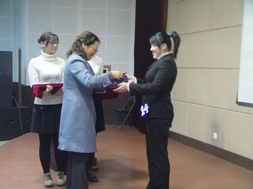 经过一番激烈的角逐,来自经管学院的乔丽娜同学荣获本次演讲比赛的冠军,信息工程学院的李洋同学和经管学院的高捷同学获得本次大赛的二等奖,资源学院的李政林同学、信息工程学院的董晚霞同学、资源学院的刘云亮同学获得三等奖,材料学院的王志磊等六名同学获得优秀奖,评委老师为获奖选手颁发了证书及奖品,并与所有选手合影留念。