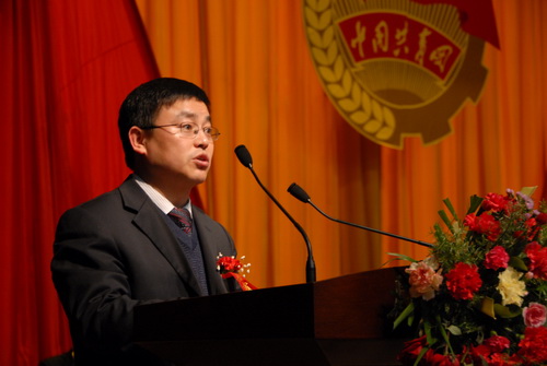 校党委书记雷达发表讲话。他首先代表学校党委、行政向大会的召开表示热烈的祝贺!他指出,第一次团代会以来,全校各级共青团组织高举中国特色社会主义伟大旗帜,围绕培养合格建设者和可靠接班人这一中心任务,团结带领广大团员青年,开展了大量卓有成效的工作,实践证明,我校各级团学组织不愧为党联系青年的牢固桥梁和纽带,是党可以信赖的得力助手;长安大学的莘莘学子,是勇于担当、奋发进取、值得信赖、大有希望的青年一代!雷达书记希望广大团员青年能够在坚定不移地走中国特色社会主义道路上唱响爱国主义的时代强音;希望广大团员青年和学生能够在奉献社会中锤炼道德品质;希望广大团员青年和学生能够在勤奋学习中培育学术精神;希望广大团员青年和学生能够在主动参与校园文化的过程中提升综合素质。
