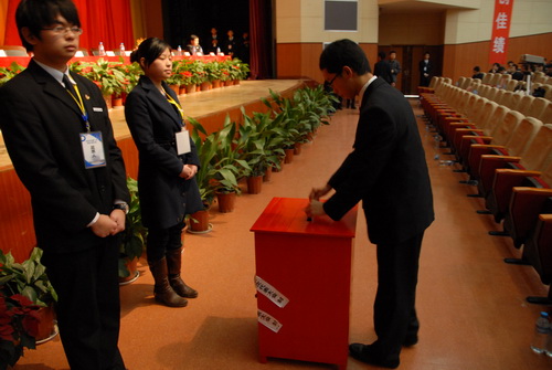 会场 大会主席台 校党委书记雷达出席大会并作重要讲话校长马建出席大会 团省委副书记张小平讲话 校党委副书记杜向民出席大会 校党委副书记白华出席大会 副校长刘建朝出席大会 团市委书记李斌出席大会 陕西省学联主席朱伟同学致辞 兄弟高校代表、西北农林科技大学团委书记刘瑞明发言 张骞文同志作报告 张晓明同学作报告 投票 共青团长安大学第二届委员会第一次会议 长安大学第一届学生委员会第一次会议