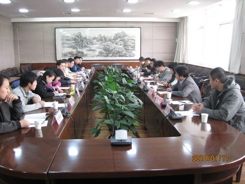 2010年1月17日上午,西北农林科技大学团委书记刘瑞明等一行11人来到我校进行调研交流。我校团委书记张骞文、副书记张侠,校团委全体干部,工程机械学院团委书记朱武威,资源学院团委书记刘会涛等在学术交流中心第五会议室亲切接待了到访来宾。双方就学生科技创新活动、校园文化活动、学生社团管理等方面进行了深入而愉快的交流。