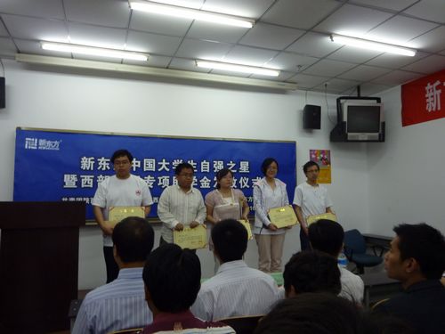 2009年度“中国大学生自强之星”评选活动由团中央和全国学联主办,中国青年报社和中国高校传媒联盟承办,新东方科技教育集团协办。寻访活动自去年12月启动以来,受到高校团学组织和在校大学生的持续关注,各高校纷纷开展了寻访、推荐大学生自强之星的活动。截至目前,寻访“中国大学生自强之星”活动已成功举办4届。2007年,新东方教育科技集团出资5000万元,开始设立“中国大学生新东方自强奖学金”,每年500万元,除奖励大学生自强之星外,其余资金用作“新东方西部特困大学生专项助学金”,专门资助西部省份的750名特困大学生。