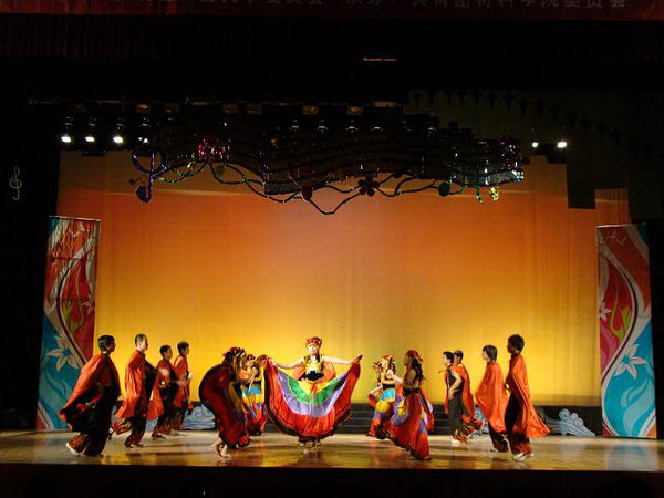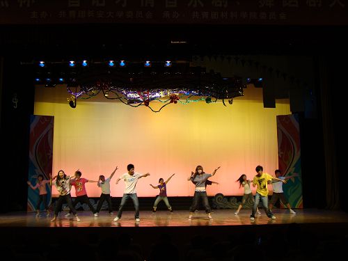 接着比赛正式开始,在一首首优美动人的旋律中,各参赛队的同学们尽情表演,感受着艺术的独特魅力。在整个的音乐剧表演过程中,大家投入的表演不时赢得现场观众的阵阵掌声,使得现场气氛不断升温。真实朴实的情节和动感的舞姿展现着青春无悔的记忆和独特的风采;爱的谎言编织成了满载纯真爱心的摇篮,体现着“灾难无情人有情”的爱的赞歌;小理想与最初的理想谱写出了美妙的理想进行曲,告诫着人们永远不要停止追逐梦想的脚步。在各参赛队比赛之后,材料学院的同学们为大家献上了独具民族特色的舞蹈—《七月的火把节》,舞姿热情洋溢,激情四射,体现着民族艺术的独特风采。