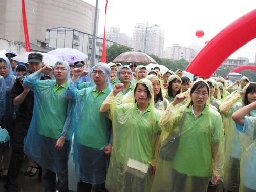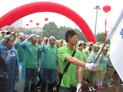 我校志愿者雨中宣誓