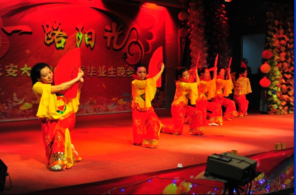 伴随着一支气势恢宏的歌曲,《扇舞长安》拉开了晚会的帷幕,优美的舞姿将她们出众的才华、璀璨的青春展现的淋漓尽致。随后在呼喊声中动感的《爱的主打歌》和异域风情的舞蹈《西域风情》相继登场。歌曲《传奇》,韩国劲舞《摇摆》和《Buttons》再次将观众的视线拉近,呐喊声、喝彩声不断。随后观众被《高原红》歌中那美妙动听的曲调所感动,伴随着音乐摇动着手中的荧光棒。二胡独奏《五重奏》令人耳目一新,时而悠扬婉转,时而欢快奔腾。《奔跑》唱出了同学们的心声:追逐属于我们心中的梦想,即使前方荆棘满地,也风雨无阻。晚会又一高潮要数音乐剧《流年》,故事描述一位长大毕业的成功人士回忆在长大的点点滴滴,引起场下无数共鸣。追忆曾经的似水年华,逝去的青葱岁月都留在了记忆的屏幕中。再一次勾起了毕业生们不舍的情怀,配着舒缓柔和的女生小合唱《心愿》,回忆大学四年一路走来,如今就要离去,不过梦想要靠自己去追逐,去奋斗。
