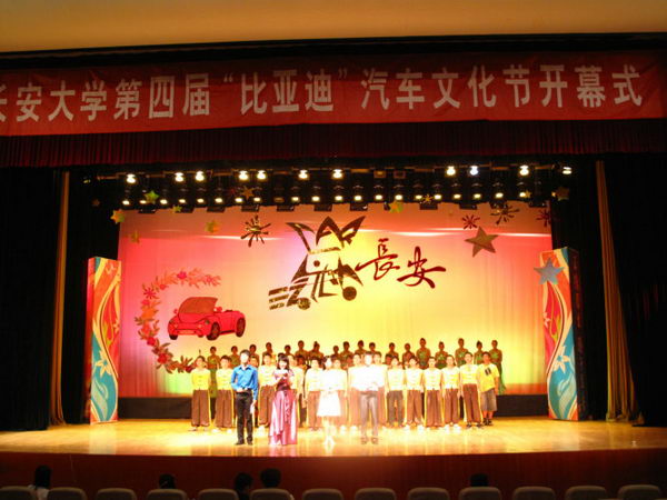随着5月的到来,筹备已久的长安大学第四届“比亚迪”汽车文化节逐渐拉开了帷幕。由长安大学团委主办,汽车学院承办的汽车文化节已走过了三个年头,取得了丰富的成果并在校内外产生了良好的影响。5月9日晚,长安大学第四届“比亚迪”汽车文化节开幕式隆重举行。长安大学党委副书记白华老师,比亚迪汽车西安大区销售总监孟宏社先生,陕西法士特汽车传动集团公司副总经理马旭耀先生,陕西法士特汽车传动集团公司人力资源部副部长宋黎军先生,学校相关职能部门领导、兄弟学院副书记、汽车学院领导、各系(室)主任及教师代表等领导及嘉宾出席了开幕式晚会。