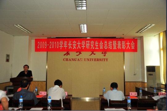 2010年6月22日下午16:00,2009-2010学年长安大学研究生会总结暨表彰大会在校本部交通科技大厦六楼第二报告厅召开。校团委书记张骞文、学工部副部长王冰、研究生部招生办公室主任何理想,科技处副处长陆宁,校团委副书记张侠,学工部研究生工作办公室主任张艳萍等领导老师应邀出席了会议。校研究生会全体成员、各学院研究生分会主席团成员、先进集体和优秀论文获奖者代表等一百余人参加了会议。会议由校团委社团与文体部主任、校研究生会秘书长龚少博老师主持。