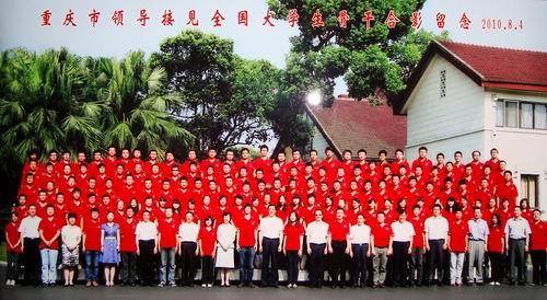 中共中央政治局委员、重庆市委书记薄熙来,共青团中央书记处书记卢雍政等领导与中国大学生骨干培养学校第三期学员合影