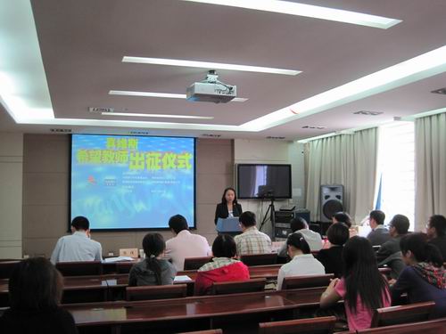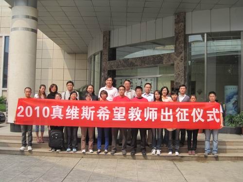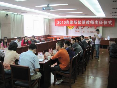 8月26日,2010年真维斯希望教师出征仪式在我校学术交流中心第一会议室举行。陕西实施希望工程办公室主任乌钢、陕西真维斯服饰有限公司总经理刘福起、校团委副书记张侠出席仪式。