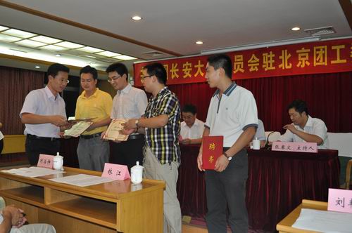 为了贯彻落实胡锦涛总书记“两个全体青年”的总体要求,凝聚我校青年校友力量,进一步发挥共青团组织青年、引导青年、服务青年、维护青年合法权益的职能作用,根据团中央、团省委有关要求,结合我校毕业生在京团员青年实际,8月25日,共青团长安大学委员会驻北京团工委成立大会在北京交通宾馆召开,共青团陕西省委副书记张小平,我校校友会理事、人民交通出版社社长杨文银,共青团陕西省委学校部副部长单舒平,我校团委书记张骞文及四十余名在京青年校友参加了成立大会。大会由团委书记张骞文主持。 会上,团省委副书记张小平与我校校友会理事、人民交通出版社社长杨文银为长安大学驻京团工委揭牌;我校团委老师刘艳艳宣读了《共青团长安大学委员会驻京团工委工作人员建议名单》,与会人员一致表决通过;团省委学校部副部长单舒平为新当选的驻京团工委书记、副书记和秘书长颁发了聘书。 杨社长对长安大学驻京团工委的成立表示热烈祝贺,希望广大青年校友能够积极联系在京老校友,充分挖掘利用各方面资源,不断推动团工委及自身的发展。新当选的驻京团工委书记刘治伸发言,希望各位青年校友共同努力,充分发挥团工委组织、引导、服务青年校友的职能,把驻京团工委打造成北京青年校友的温暖大家庭。 驻京团工委将从我校在京毕业生的实际需求出发,为他们提供就业实习、信息交流、文化娱乐、维权保障等方面的服务,切实做好青年校友与学校沟通的桥梁和纽带,更好地为在京青年成长服务,为学校发展服务。