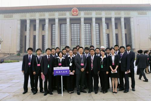 团中央学校部部长李小豹(前排左二)与张晓明(前排右一)所在的陕西代表团合影