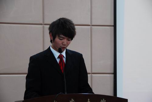 校团委书记张骞文老师讲话 校团委刘艳艳老师主持会议 上任校学生会主席张晓明同学发言 现任校学生会主席王垚同学发言 会议现场