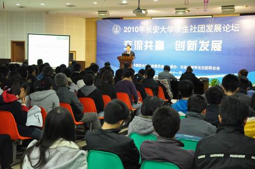 据悉,本次交流会是2010年长安大学学生社团发展论坛系列活动之一,旨在通过交流,进一步解放思想,明确学生社团的发展定位、厘清学生社团的发展思路、促进我校学生社团科学、协调、可持续发展。