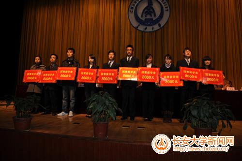 12月24日下午,我校在渭水校区朝晖大学生活动中心大礼堂隆重举行2009-2010学年度优秀学生表彰大会。校党委书记雷达,校长马建,校党委副书记董小林、白华,副校长刘建朝出席会议。党办、校办、组织部、宣传部、学工部、校团委、教务处、研究生部、计财处、后勤处、党校、学生就业与发展服务中心、渭水校区管委会办公室、后勤集团等单位主要负责人,各院(系)党政主要负责人、主管学生工作的领导,全体学生工作干部、受表彰的先进集体和优秀个人代表、2010级本科生代表共计1300余人参加大会。校党委书记雷达发表了重要讲话。大会由校党委副书记白华主持。 雷达书记向受表彰的先进集体和优秀个人表示热烈的祝贺,向辛勤培育学生的各位老师表示诚挚的感谢。雷达书记指出,近年来,学校贯彻落实科学发展观,坚持以人才培养为中心,努力加强师资队伍建设,改善办学条件,优化育人环境,为广大学生提高创新实践能力和思想文化素质创造了良好的条件。2010年学校各项工作都取得了可喜的进步,学生在创先争优、学业发展、校园文化、科技创新、社会实践、志愿服务等诸多方面也取得了骄人的成绩。 雷达书记向全体学生提出了三点希望和要求:一是希望同学们坚定信念,立志成才。同学们应按照胡锦涛总书记对当代青年所希望的那样,努力成为理想远大、信念坚定的新一代,品德高尚、意志顽强的新一代,视野开阔、知识丰富的新一代,开拓进取、艰苦创业的新一代。二是希望同学们学习榜样,健康成长。雷书记引用经典,要求广大学生“见贤思齐”,“见不贤而内自省”。他希望广大学生要努力学先进,赶先进,勇于从小事做起,善于从眼前做起,脚踏实地,勇于进取,努力提高综合素质。三是希望同学们创先争优,爱校建校,以实际行动参与学校的建设和发展,为把学校早日建设成为特色鲜明的高水平大学贡献自己的力量。 雷书记强调,学生培养是学校党的工作的重要组成部分,各级党组织和学生工作各部门要树立以人为本,德育为先的教育理念,学习贯彻党的十七届四中、五中全会和第十九次全国高校党建工作会议精神,创新思想政治教育的内容和方法,牢牢把握意识形态领域的主导权,保持和谐稳定的良好局面。要以优良党风正校风、促教风、带学风,弘扬爱国精神、科学精神和人文精神,培育以社会主义核心价值为主体的各具特色的大学文化。 会上,董小林副书记宣读《关于表彰国家奖学金、国家励志奖学金等学生先进集体和优秀个人的决定》;刘建朝副校长宣读《关于表彰学生科技创新竞赛与学科竞赛获奖作品和获奖者的决定》。我校今年有1个班级荣获“全国先进班集体”称号,2名同学分别荣获“全国三好学生”和“全国优秀学生干部”称号;有213名同学获得国家奖学金,650名同学获得国家励志奖学金。2009级硕士研究生陈春利代表获奖学生发言。她从自身学习和生活历程,号召全体同学要开阔视野,拓宽知识领域,致力于做一个综合型的高素质人才;要踏实勤奋,刻苦努力,致力于做一个有理想、敢拼搏的新时代青年;要团结协作,互帮互助,致力于培养和树立团队意识。2010级本科生陈国瑞代表新生发言。他代表全体新生表示,感谢学校为同学们健康成长组织开展的新生教育工程等教育活动,感谢老师和师兄师姐的榜样力量。他代表新生表示,一定会发愤图强,创先争优,用自己的青春与才智,在长安大学这片沃土上,书写人生最值得回忆的华彩篇章!在欢快的乐曲中,出席大会的校领导为荣获国家奖学金、国家励志奖学金、全国先进班集体、校级三好学生等各级各类奖项的先进集体和优秀个人代表颁发了奖学金和奖牌。 白华副书记在总结讲话中强调,广大同学要按照党和国家的期望,按照学校的要求,继续勤奋学习,勇于实践,开拓创新。要以这次表彰大会为契机,以被表彰的先进集体和个人为榜样,以优异的成绩,迎接教育改革发展的新起点,迎接学校60周年校庆盛典。