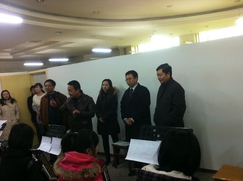 白华副书记先后慰问了民乐团、手风琴乐团、合唱团、管乐团和舞蹈团的师生,并欣赏了排练的节目。看完同学们的节目后,白华副书记非常高兴,并亲切地对同学们说:“今年4月18日,我校将迎来60周年校庆,同学们放弃了寒假的休息时间在这里集中训练,我代表学校来看望一下大家,大家辛苦了!这两年,在校团委和文传学院的紧密合作下,我们盘活了有艺术专长的教师和学生的作用,将第一课堂和第二课堂的艺术教育相结合,使我校的艺术教育水平不断提高,学校也获得了‘全国学校艺术教育先进单位’的称号。校园文化对学生的成长成才起着非常重要的作用,校庆晚会只是一个载体,目的是通过这个平台,让更多的同学参与到校园文化中来,以此来提升同学们的文化品位,开阔大家的眼界、挖掘大家的潜力,促进大家的成长。还有三个月就要正式演出了,虽然很辛苦,但是时间短、任务重,希望同学们在各位老师的指导下,以饱满的热情投入到紧张的排练工作中来,届时接受全校师生和海内外校友的检阅。”