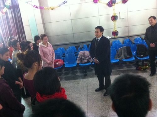 1月18日上午,校党委副书记白华在学工部部长田新民、校团委书记张骞文的陪同下来到校本部东院雁博园亲切慰问了正在为校庆晚会紧张排练的200余名师生。校团委、文传学院部分同志参加了慰问。