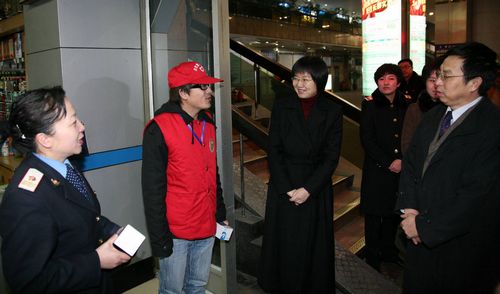 团省委书记卫华、团省委副书记张小平,我校党委副书记白华一行首先来到西安火车站,在西安铁路局副局长、总经济师胡晓波等人的陪同下,深入旅客候车室、验票口和站台,看望正在为旅客提供进站咨询和乘车引导的志愿者,为他们送上了慰问品。