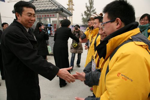 团省委书记卫华、校党委副书记白华与志愿者亲切交谈