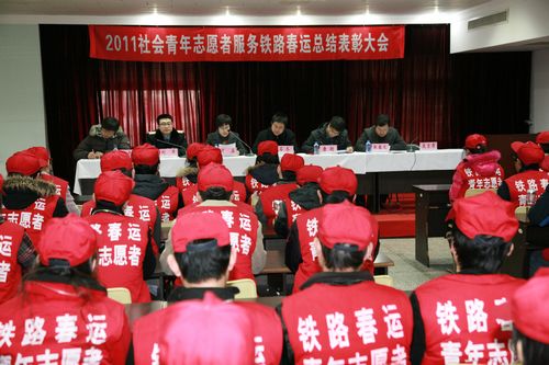 2月22日下午四点, 2011社会青年志愿者服务铁路春运总结表彰大会在西安车站四楼会议室召开。全国铁路局团委石冬、团陕西省委志工部唐超、长安大学团委书记张骞文、西安铁路局团委书记夏磊、西安车站副站长刘军等领导出席会议。我校60名春运志愿者参加了此次会议。会议由西安铁路局团委书记夏磊主持。这标志着我校青年志愿者服务春运工作圆满结束。