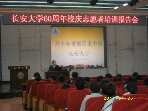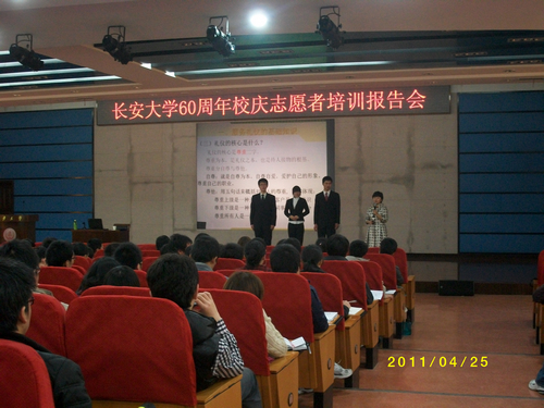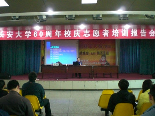 值此六十周年校庆来临之际,按照学校校庆筹备领导小组的有关精神和要求,学工部、校团委3月初开始组织招募校庆志愿者。“我为校庆添光彩,校庆因为更精彩”,广大学生踊跃报名参加校庆志愿者服务。为了进一步调动学生参与校庆志愿者服务的热情,提高校庆志愿者的综合素质,3月26日—27日,学校在校本部和渭水校区同时举办六十周年校庆志愿者培训系列报告会。学工部、校团委有关人员参加并主持报告会。校本部和渭水校区各500余名校庆志愿者聆听了报告。
