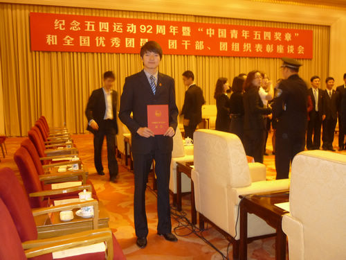 5月4日上午,纪念五四运动92周年暨中国青年五四奖章和全国优秀团员、团干部、团组织表彰座谈会在京举行。中共中央政治局委员、全国人大常委会副委员长王兆国,团中央书记处第一书记陆昊出席座谈会。我校公路学院王垚同学被团中央授予2010年度“全国优秀共青团员”称号(中青发[2011]7号文件),并受邀参加座谈。