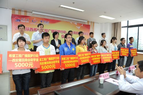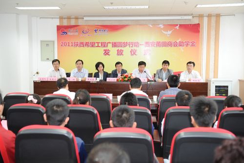 9月6日下午,2011陕西省希望工程广播爱心圆梦行动——西安莆田商会助学金发放仪式在校本部东院教学区地学科技大厦报告厅举行。共青团陕西省委副书记段小龙、我校党委副书记白华、陕西新闻广播副总监戴丽英、西安莆田商会名誉会长李德荣、省希望工程办公室主任乌钢、中国电信陕西分公司副总经理阳松波、中国电信西安分公司校园运营部副主任赵彦龙、我校就业发展中心资助服务部主任李晓阳出席助学金发放仪式,仪式由校团委书记张骞文主持。