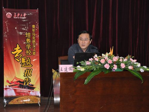2011年9月28日晚,长安大学青年马克思主义者培养学校在朝晖大学生活动中心三楼多功能厅举办了第四期高级班学员专题报告会。我校经济与管理学院教授、博士生导师王建伟为全体学员作了题为《转变发展方式发展现代道路运输业》的精彩报告。校团委书记张骞文出席了本次报告。