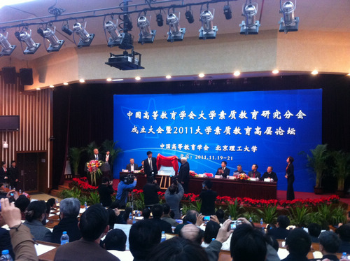 2011年11月20日,中国高等教育学会大学素质教育研究分会成立大会暨2011大学素质教育高层论坛在北京理工大学召开。教育部党组副书记、副部长杜玉波,大学素质教育研究分会第一届理事会顾问、中国高教学会会长周远清揭牌并发表重要讲话。