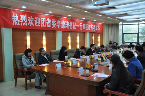 11月25日,共青团陕西省委书记李豫琦一行来我校就大学生思想政治教育和共青团工作进行调研。校党委书记雷达、校长马建分别在渭水校区会见了李豫琦书记。校党委副书记白华出席了座谈会。