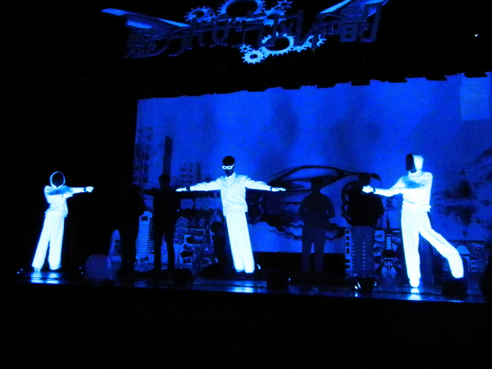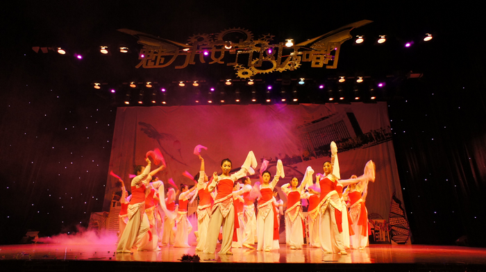 在文艺表演中,汽车学院为现场观众呈现了一台精彩绝伦、气势恢宏、幽默与优雅共存、激情与柔情同放的文艺晚会。黑光剧《魅影》展现了黑暗中光的美轮美奂,古典舞蹈《桃夭》跳出了女子的柔情,男生独唱《离人》更是唱出了动人的旋律和离别的深情。轻松幽默搞笑的相声《幸福童年》向大家讲述了童年发生的一件件趣事,带领观众们温习了一下童年的功课。《戏舞苗山》是由少数民族同学表演的一段精彩的舞蹈。