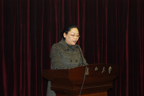 颁奖典礼上,校长助理彪晓红老师作了讲话。她首先代表学校向获奖的团队和个人表示热烈的祝贺,向中国青少年发展基金会、共青团湖南省委、湖南中烟工业有限公司表示衷心的感谢。彪老师说,“芙蓉学子•榜样力量”优秀大学生评选活动已经在我校举办了7届,7年来,校团委精心策划、认真组织、扩大参与面、深化建设成果,先后评选表彰了114位优秀大学生及团队,这些先进个人和团队,在校期间是学生科研骨干、道德风尚楷模、公益爱心使者、团队合作表率,在学校建设发展中发挥了青年学生的积极作用;在之后的发展过程中,有的荣获了“全国三好学生”、“全国优秀共青团员”、“陕西省青年突击手标兵”、“甘肃省道德模范”等荣誉,有的考入了知名高校继续深造,有的进入了大型国企、事业单位参加工作,他们用自己的实际行动向学校和捐赠单位交上了一份出色的答卷,不愧于榜样的称号。“榜样的力量是无穷的”。举办“芙蓉学子•榜样力量”优秀大学生评选活动,旨在引导当代大学生树立正确的世界观、人生观、价值观,努力把自己培养成为符合时代要求的优秀人才;在青年学生中树立自强、自立的榜样,在大学校园里形成创先争优、学习先进、赶超先进的良好氛围,进一步促进大学生的全面发展。希望全校学生向受表彰的同学和团队学习,学习他们勤奋钻研、锐意进取的精神,学习他们勇于实践、开拓创新的精神,学习他们服务他人、乐于奉献的精神,学习他们自立自强、团结拼搏的精神,也希望受表彰的同学和团队戒骄戒躁、不懈努力、再创佳绩,努力成为德智体全面发展的青年表率。