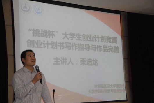 2011年12月15日19:00,由长安大学大学生科技创新与创业协会(简称“校科协”)承办的第七届“挑战杯”大学生创业计划竞赛之创业计划书写作及完善指导讲座在朝晖大学生活动中心三楼多功能厅成功举行。本次讲座主讲人为我校公路学院栗培龙副教授。校团委办公室副主任郑玮华老师、校团委李瑾老师出席了本次讲座。校院两级大学生科技创新与创业协会主要负责人、入围竞赛复赛各创业团队参加了此次讲座。