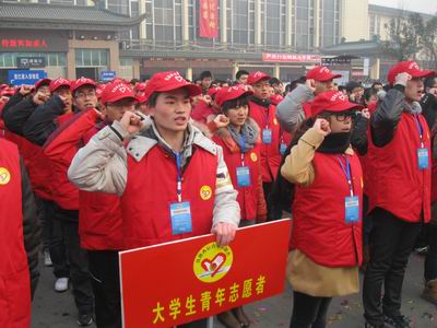 今年春运期间,在团省委的大力支持下,我校与陕西科技大学、西安外国语大学共同承担了春运青年铁路志愿者服务工作,共招募青年志愿者98名,其中我校志愿者80名。