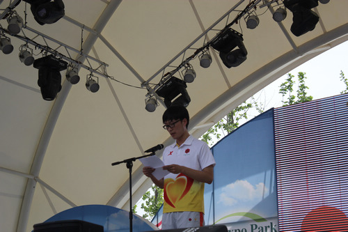 上午10点整,世园会开园仪式正式开始,志愿者代表、农民工子女组成方阵参加了开园仪式。随后,在“水龙吟”舞台,“让生命充满爱 小蜜蜂重返世园”活动举行。活动首先播放了西安世园会志愿者服务纪录片,并由世园会领导介绍世园公园的现状与发展;我校志愿者——夏宁同学代表全体“小蜜蜂”们庄严承诺:要继续发扬“小蜜蜂”精神,积极投入到我市关爱农民工子女、关爱留守儿童、关爱孤残儿童、关爱空巢老人等志愿服务行动中来,在全社会形成关心人、爱护人、帮助人、理解人的良好社会氛围;团市委书记李彬在讲话中对全市团组织、志愿者组织寄予希望,他呼吁广大青年以世园会的再次开园为新的起点,践行“奉献、友爱、互助、进步”的志愿者精神,以饱满的热情投入到宣传西安国际化大都市文明建设的事业中去,以真诚的爱心投入到关爱农民工子女志愿服务活动中去,为西安建设具有历史文化特色的国际化大都市贡献青春和智慧。最后,在“小蜜蜂”们的引领下,农民工子女和“小蜜蜂”们一起参观了创意馆、自然馆,登上了长安塔,切身感受了世园的秀美壮丽。游园路上,我校学生还为旅客朋友们提供了各项志愿服务。事后,一位志愿者深情的说道:“能穿上志愿者的衣服,我们觉得很光荣!真希望能来世园为人们多服务几天!”