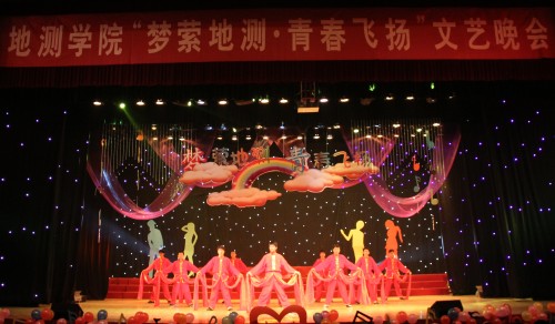 歌声飞扬,舞姿曼妙,掌声雷动。2012年5月3日晚,地测学院“梦萦地测•青春飞扬”文艺晚会在渭水校区大学生活动中心大礼堂盛大呈现。群星闪耀,热情激荡,青春飞扬,给所有师生留下了难忘的记忆。学工部部长贺宏斌、渭水校区办主任袁春学、校团委副书记张侠、图书馆副馆长高进龙、电控学院党委副书记林贵宝、信息学院党委副书记陈晏、资源学院党委副书记薛冬钧以及地测学院党政领导、各系负责人、教师代表出席了本场晚会。