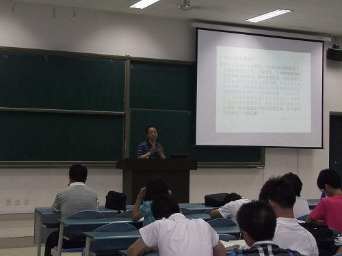 讲座中,王书记首先以大学生是最宝贵的人才资源引入本次课程的主题:加强党性修养,提高综合素质,锻炼成为社会主义事业的建设者和接班人。接着他从几个方面具体介绍了中国共产党的先进性,并运用袁隆平等事例阐述了中国共产党先进性的基本内涵以及共产党员应该如何保持先进性。之后课程进入第二板块:全面把握21世纪人才的基本要求。王书记从大学生的实际生活出发详细解说,引经据典,从各个方面指出作为新世纪的人才,当代大学生应该具备的素质和才能。接着他就世界大发展大变革大调整的背景下带领大家展望了中国站在新的历史起点上所拥有的优势和面临的挑战。随后王书记对同学们提出几点希望,希望同学们在努力学习知识的同时,加强党性修养,培养科学精神,全面发展成为祖国的栋梁之才。