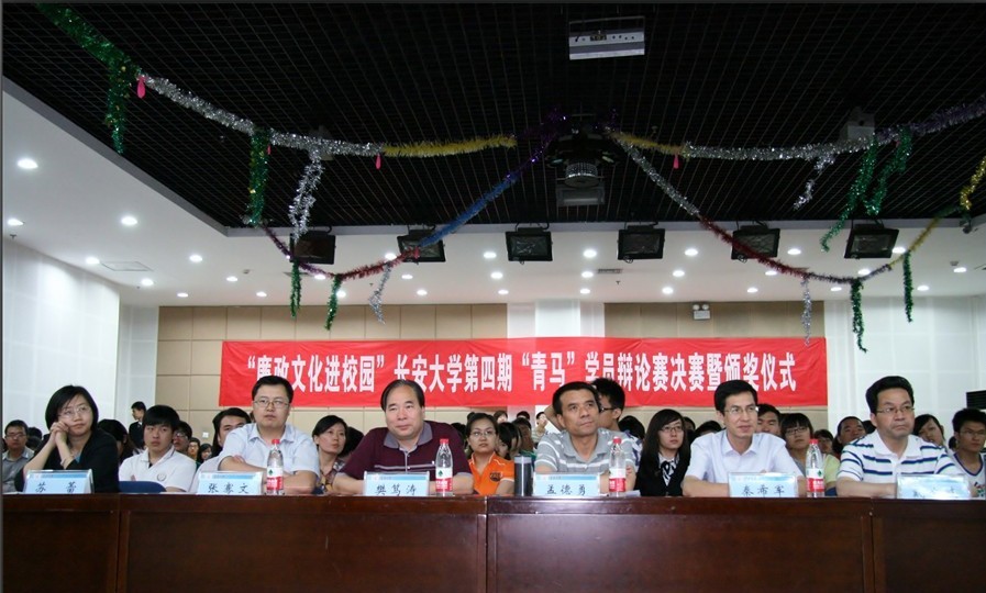 5月10日晚,“廉政文化进校园”——长安大学第四期青年马克思主义者培养学校学员辩论赛决赛暨颁奖仪式在朝晖大学生活动中心多功能厅举行。校党委副书记、纪委书记孟德勇出席并讲话。纪委副书记、监察处处长樊笃涛,纪委办公室主任秦希军,校团委书记张骞文,“青马”辩论赛指导教师戴生岐、苏蕾担任决赛评委,决赛由学生会主席、“青马”班总班长刘亚伟同学主持。