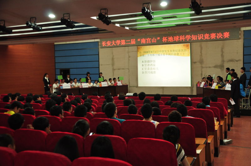 2012年5月14日,长安大学第二届地球科学知识竞赛在渭水校区行政楼学术报告厅圆满举行。陕西省岚皋县国土资源局党组书记胡润宝、岚皋县国土资源局副局长杨建、长安大学学工部副部长王冰、资源学院党委副书记薛冬钧出席比赛。
