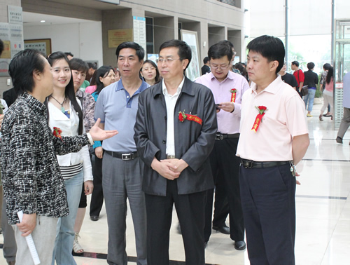 校党委副书记白华、陕西省书画家协会副秘书长巨石、西部书画院院长韩舒柳、学工部部长贺宏斌、校团委书记张骞文、学生就业与发展服务中心副主任张金玉、经管学院党委书记胡予欣、院长吴群琪出席画展开幕式