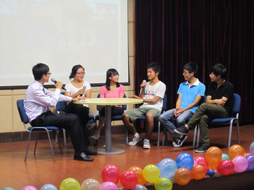 晚7:30,访谈正式开始。首先登场的是一对志愿者“姐妹花”:来自10级经管学院统计1班的路芳和王慧丽。这对姐妹花来自同一个班级、同一个宿舍。她们共同生活、共同学习,她们有着同样志愿服务的热情。其中,路芳同学作为青年志愿者服务总队项目监理部的部长,讲述了她作一名志愿者的心路历程。她把自己称为“志愿者中的志愿者”,平日里她的工作更多的则是服务于一线的志愿者们。她说:“有一句话叫做‘赠人玫瑰,手留余香’,如果说一线的志愿者是那个赠玫瑰人,那我们就是培育玫瑰的园丁,这也是在做志愿,我们也一直在坚持着。”两个女孩欢笑如清水,志愿的路上她们一路同行。
