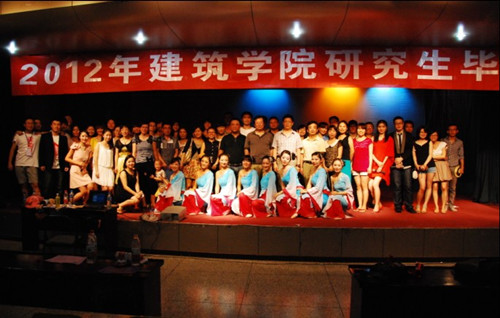 2012年6月17日晚7点,在长安大学雁塔校区雁博园四楼,建筑学院举行了2012届研究生毕业晚会。学院党委书记张炜、院长霍小平、副院长武联、王农、党委副书记李小芹、史少鹏、研究生导师蔡辉、韩茂蔚、李成、侯全华以及学院办公室、学生办公室老师及全体研究生同学参加了晚会。